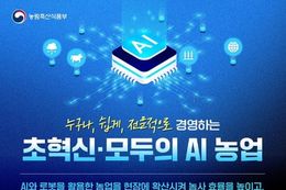 인사이드피플 장은미 기자 | ■ 누구나, 쉽게, 전문적으로 경영하는 초혁신·모두의 AI 농업 AI와 로봇을 활용한 농업을 현장에 확산시켜 농사 효율을 높이고, 세계로 수출하는 산업이 될 수 있도록 지원하겠습니다! - 생산성·수익성 향상 · 맞춤형 AI 영농처방으로 비용 절감 및 생산성 향상 · 어렵고 힘든 농작업은 AI·로봇으로 농작업 부담 완화 및 삶의 질 개선 · AI를 통한 개체별 맞춤 사양관리 및 질병 조기 감지·예방 - 글로벌 농업 선도 · 국산 AI 기술 확산과 AI팜 패키지 수출로 글로벌 시장 선점