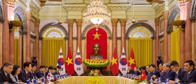 인사이드피플 노승선 기자 | 베트남을 국빈 방문한 이재명 대통령은 22일(현지시간) "양국은 2030년까지 교역 규모 1500억 불 목표 달성을 위해 교역·투자 협력을 더욱 호혜적으로 발전시켜 나가기로 했다"고 밝혔다. 이 대통령은 이날 또 럼 베트남 서기장 겸 국가주석과 하노이에 위치한 주석궁에서 정상회담 후 가진 공동언론발표를 통해 이 같이 말했다. 이 대통령은 발표를 통해 "베트남은 대한민국의 3위 교역·투자국이고, 한국은 베트남의 최대 투자국"라며 "약 1만 개의 한국 기업이 석유화학, 조선, 철강, 전자를 아우르는 전 분야에 진출해 높은 수준의 경제 연대를 이루고 있다"고 협력 관계를 강조했다. 또 "한국은 베트남의 '2045년 고소득 선진국 진입' 비전 실현을 위한 최적의 파트너로서, 물류, 교통, 에너지, 인프라와 같은 하드웨어 분야에서부터 과학기술, 지적재산, 창조산업 등 미래 산업 분야까지 전방위적인 협력을 추진하고 있다"고 덧붙였다. 이 대통령은 "이번 정상회담에서 '포괄적 전략 동반자' 협력을 더욱 공고히 하기로 했다"며 회담 주요 성과를 소개했다. 교역·