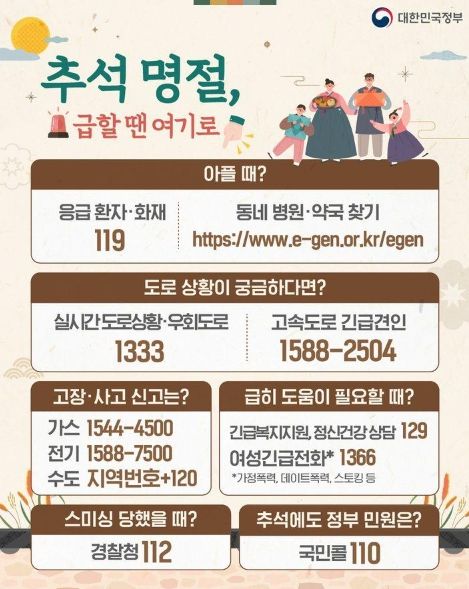 인사이드피플 장은미 기자 | 추석 연휴, 긴급한 일 생겼을 때 신속하게 도움받으실 수 있도록 비상연락처를 알려드립니다.