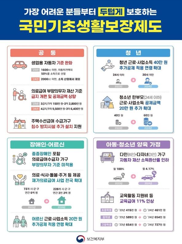 - 재산 기준: 자동차, 주거용 재산 기준 완화