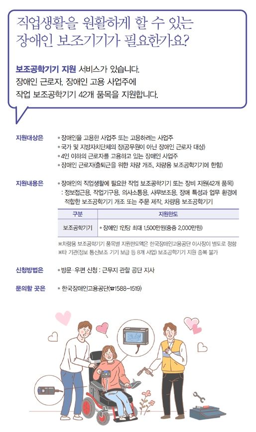 · 장애인의 직업생활에 필요한 작업 보조공학기기 또는 장비 지원(42개 품목)