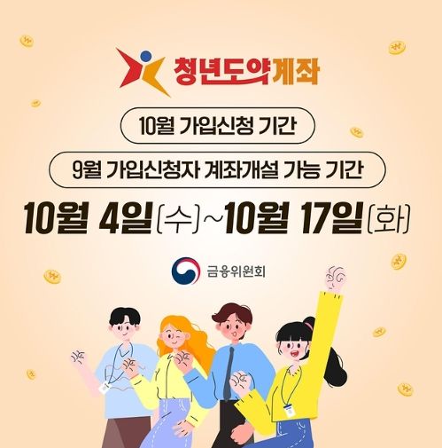 인사이드피플 장은미 기자 | 청년도약계좌 10월 가입신청 기간은 10월 4일(수)~10월 17일(화)으로 가입요건 확인 후 11월 1일(수)~11월 17일(금)까지 계좌개설이 가능합니다.