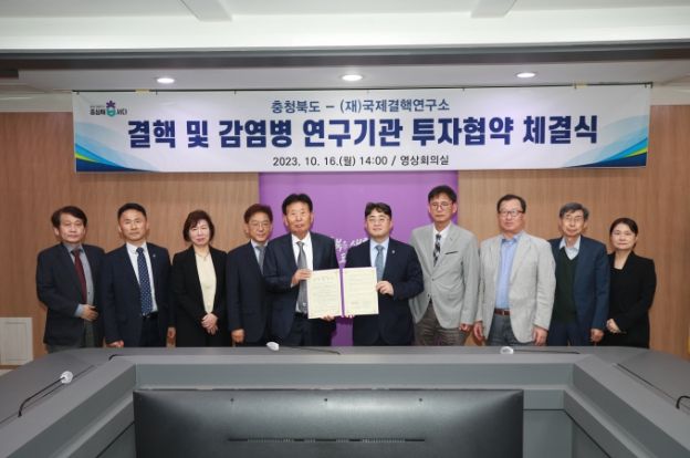 인사이드피플 장은미 기자 | 충청북도는 16일 도청에서 (재)국제결핵연구소와 오송첨복단지 내 10,335.2㎡, 300억 규모의 본소 이전을 위한 투자협약을 체결했다.