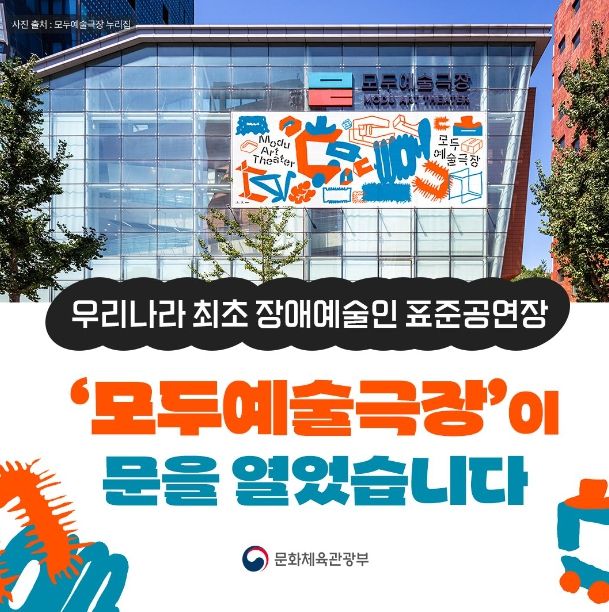 공간과 시설, 서비스 등 전 분야에서 창작과 관람을 위한 높은 접근성을 갖춘 우리나라 최초 장애예술인 표준공연장 ‘모두예술극장’이 문을 열었습니다.