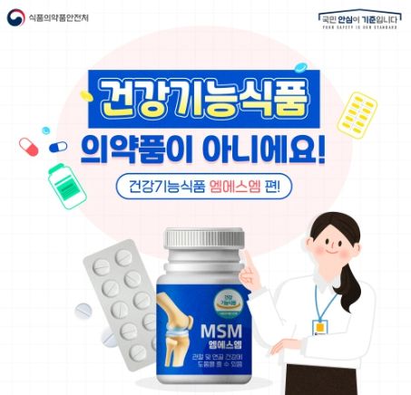 그런데, 엠에스엠(MSM) 성분의 제품들을 의약품으로 잘못 알고 계신 분들이 많으시더라고요. 건강기능식품 엠에스엠(MSM)은 건강기능식품입니다.