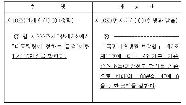 생계비 명목 파산재단 면제재산 상한을 ‘정률’로 개정