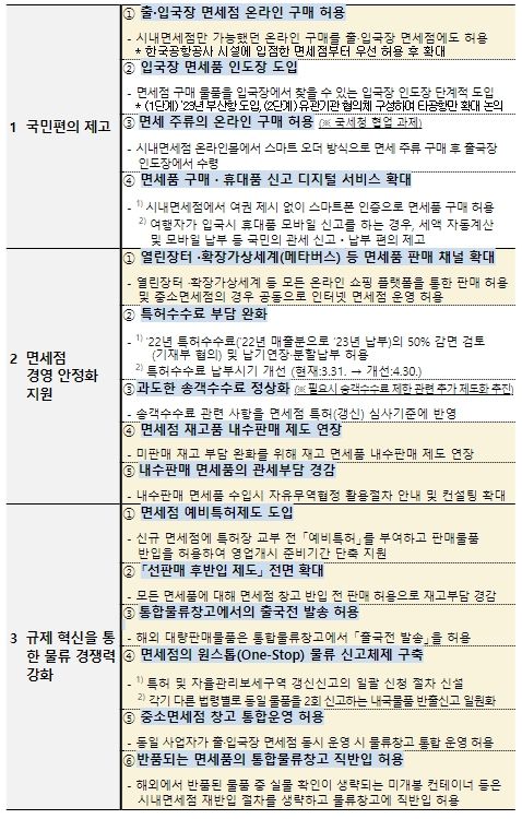열린장터ㆍ확장가상세계(메타버스) 등 타사 온라인 플랫폼에서도 면세품 판매를 허용하고, 중소면세점의 경우 인터넷 면세점 공동 운영도 가능