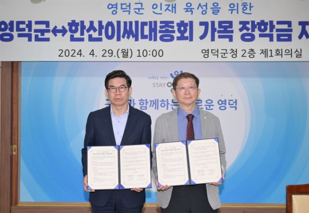인사이드피플 기자 | 영덕군과 한산이씨 대종회가 지역 인재 육성을 위해 지난 29일 장학금 지원 업무 협약을 체결했다.