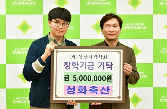 인사이드피플 기자 | (재)경산시장학회는 성화축산이 시청을 방문해 인재 육성을 위한 장학금 5백만원을 기탁했다고 30일 밝혔다.