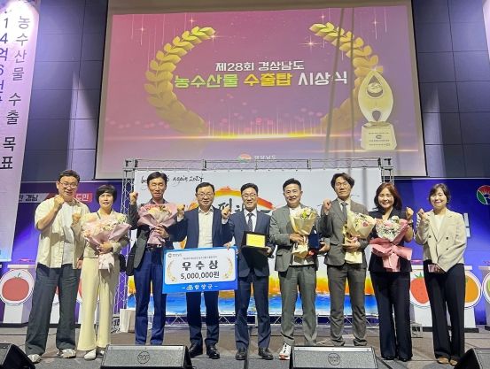 인사이드피플 기자 | 함양군이 지난 4월 30일 창원컨벤션센터에서 관계자 등 200여 명이 참석한 가운데 열린 제28회 경상남도 농수산물 수출탑 시상식에서 농수산물 수출 시책평가 부문‘우수상’ 수상의 영예를 차지했다.
