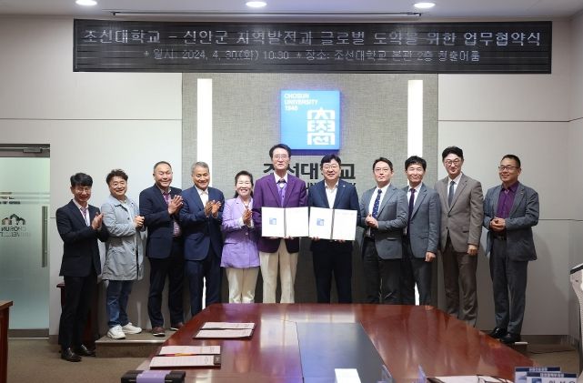 인사이드피플 기자 | 신안군은 지난 4월 30일에 조선대학교 본관 청출어룸에서 지역발전과 글로벌 도약을 위해 상호협력하기로 업무협약을 체결했다.