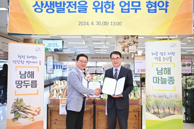 인사이드피플 기자 | 남해군과 이마트는 4월 30일 대구 이마트 월배점에서 농산물 판매 및 홍보를 위한 업무협약(MOU)을 체결했다. 이는 지난해 4월 체결한 첫 업무협약에 이은 두 번째 상생 다짐의 장으로, 보물초와 마늘종 등 품질 좋은 남해군 농산물의 판로 확대에 크게 기여할 것으로 기대된다.