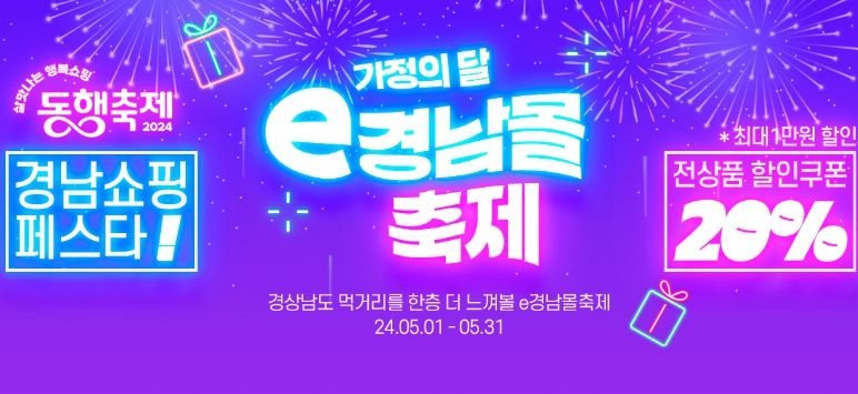 또한 e경남몰 내 58개소 수산업체의 797개 우수 수산물에 대해 매주 수요일 최대 25%를 할인(1인 최대 1만5천원)하고, 20개소 항노화기업의 80개 제품은 최대 30%를 할인(1인 최대 2만원)하는 등 다양한 할인 기획전을 실시한다.