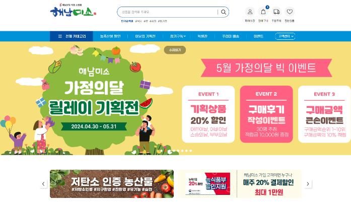 인사이드피플 기자 | 해남군 직영쇼핑몰 해남미소에서는 가정의 달을 기념해 릴레이 기획전과 고객 감사 이벤트를 준비했다.