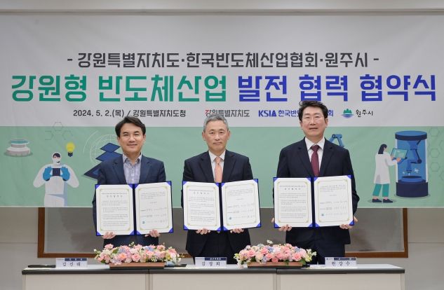 인사이드피플 기자 | 강원특별자치도와 원주시는 한국반도체산업협회와 5월 2일 강원특별자치도청에서 ‘반도체산업 발전과 전문인력 양성’을 위한 업무 협약을 체결했다.