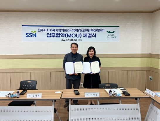인사이드피플 기자 | 전주시사회복지협의회는 2일 ㈜이강-오천만추어이야기와 지역사회의 복지 소외계층에게 기부식품을 지원하기 위한 업무협약을 체결했다.