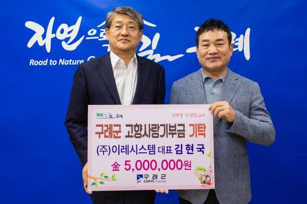 인사이드피플 기자 | 전남 구례군은 (주)이레시스템의 김현국 대표가 지난달 29일 구례군에 고향사랑기부금 최고액인 500만 원을 기탁했다고 밝혔다.