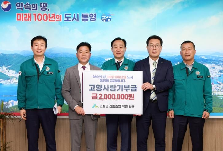 이번 기부는 고성산림조합 직원 20명과 통영산림조합 직원 20명이 양 시군에 각 200만원을 기부해 서로의 지역발전을 응원했다.