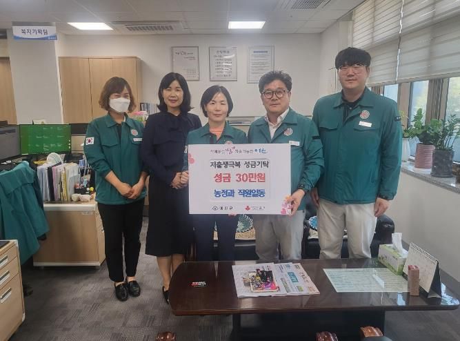 농정과장 권용준은 “인구 감소와 저출산은 우리 모두가 관심을 갖고 극복해야할 문제”라며 “저출산 극복을 위한 일에 조금이라도 도움이 되고자 직원들이 십시일반 성금을 보탰다.”고 말했다.