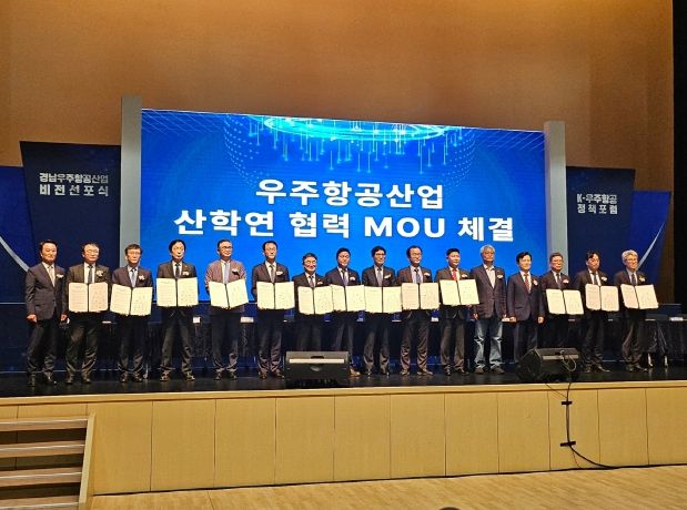 비전 선포식에서는 류명현 경남도 산업국장의 ‘2045 우주항공산업 미래 비전’ 발표 후 도-산·학·연 12개 기관 간 우주항공산업 협력 MOU가 체결됐다.