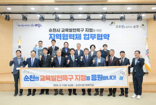 인사이드피플 기자 | 순천시는 7일 순천시청 대회의실에서 ‘교육발전특구 시범지역’지정을 위한 지역협력체의 출범식 및 업무협약식을 개최했다.