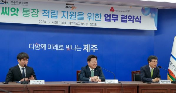 제주도는 7일 제주도청 본관 2층 삼다홀에서 저소득 아동의 자립을 뒷받침하는 디딤씨앗통장 적립금 지원을 위해 네오플과 제주사회복지공동모금회 간 3자 업무협약을 체결했다.