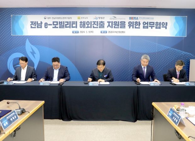 인사이드피플 기자 | 영광군은 9일, 15시에 영광 지식산업센터에서 광주·전남지방중소벤처기업청, 전라남도, 영광군, 한국자동차연구원 전남본부, 한국스마트이모빌리티협회 등 5개 기관이 전남 e-모빌리티 해외진출 지원을 위한 업무협약을 체결했다고 밝혔다.