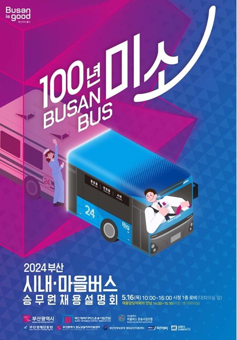 인사이드피플 기자 | 부산시는 오는 5월 16일 오전 10시부터 오후 4시까지 시청 1층(로비, 대회의실)에서 '100년 미소 BUSAN BUS, 승무원 채용설명회'를 개최한다고 밝혔다.