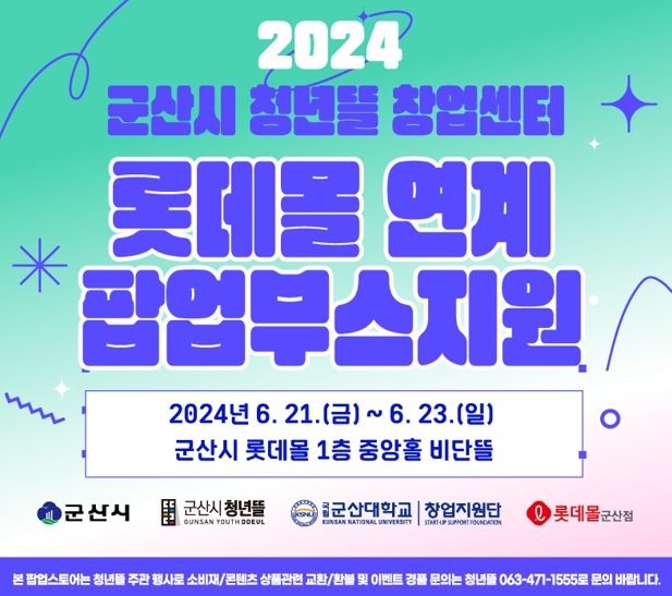 인사이드피플 기자 | 군산시 청년뜰 창업센터가 5월 13일부터 5월 24일까지 지역 창업가의 매출 증가와 판로개척을 위해 ‘2024년 롯데몰 연계 팝업부스 지원사업’ 참여자를 모집한다.