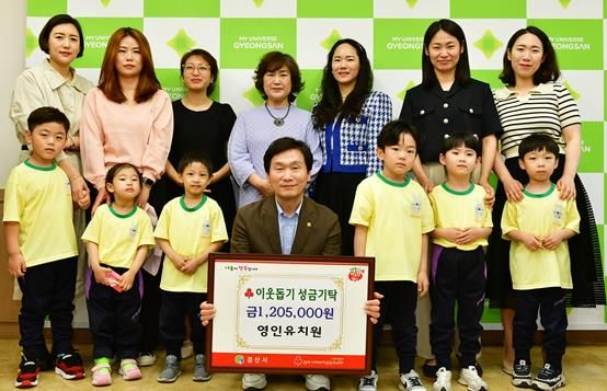조현일 경산시장은 “원아들과 학부모님들의 따뜻한 마음을 꾸준히 전달해 주심에 감사드린다”며 “고사리손으로 모은 뜻깊은 성금은 도움이 꼭 필요한 분들에게 희망이 될 수 있도록 소중히 전달하겠다”고 했다.