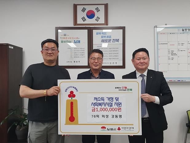 인사이드피플 기자 | 김제시는 76회 모임 회원들이 14일 지역 저소득 취약계층에 지원해 달라며 1백만원의 성금을 기탁했다고 밝혔다.