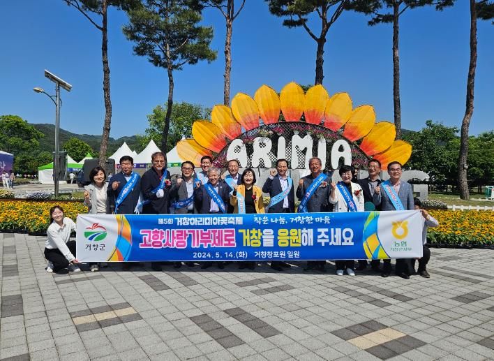 군은 꽃 축제 개막식 현장에서 농협 거창군지부장 및 지역 농·축협 조합장과 합동으로 방문객들에게 고향사랑기부제 혜택과 기부 방법 등을 안내하고 홍보 물품을 나눠주는 등의 홍보활동을 진행했다.