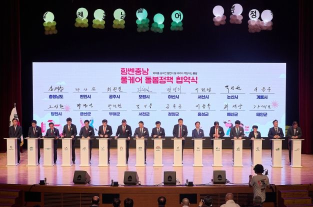 박경귀 아산시장은 14일 충남도청 문예회관에서 열린 ‘힘쎈충남 풀케어 돌봄 정책 업무협약 체결식’에 참석했다.