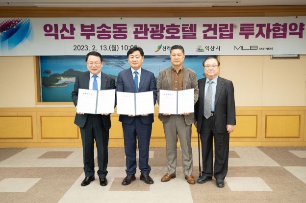 시는 13일 전북도청에서 김관영 전북도지사와 정헌율 익산시장, ㈜엠엘비파트너스 이성일 대표가 참석한 가운데 익산도심권 관광호텔 건립을 위한 투자협약(MOU)을 체결했다고 밝혔다.