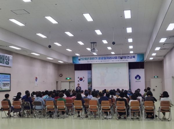 인사이드피플 심정보 기자 | 군산시는 2일 시청 민방위 상황실에서 2024년 하반기 공공근로 및 지역공동체일자리 사업 참여자들을 대상으로 안전보건교육을 실시했다.