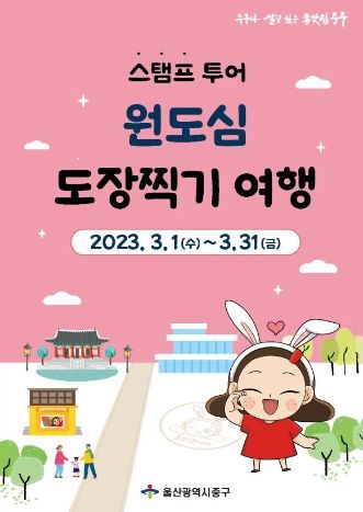 인사이드피플 강애자 기자 | 울산 중구가 3월 1일부터 3월 31일까지 한 달 동안 중구 원도심 일대에서 갤러리·문화예술 업종과 연계한 ‘원도심 도장찍기 여행(스탬프 투어)’ 행사를 진행한다.