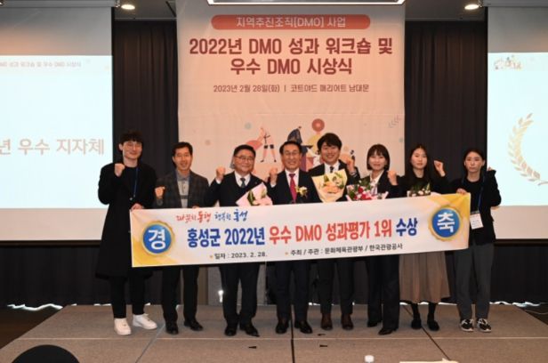 2022 한국관광의 별 특별상 수상한 ‘홍성 DMO사업단’은 지난 2월 28일 문화체육관광부가 주최하고 한국관광공사에서 주관한 ‘2022년 DMO 우수사업 시상식’에서 전국 총 21개 지자체 가운데 S등급 종합 1위로 선정돼 전국 유일 3년 연속 1위를 수상하는 쾌거를 이뤘고 홍성군은 감사패를 수여 받았다.