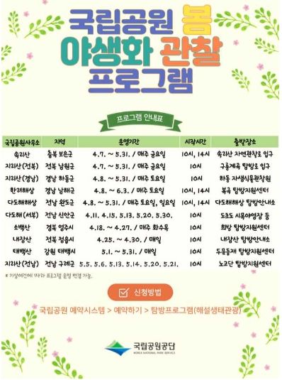 이번 야생화 관찰 과정은 4월 8일부터 5월 31일까지 운영되며 국립공원공단 예약시스템에서 4월 6일부터 신청자를 접수받는다.