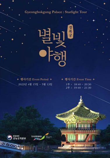 인사이드피플 강애자 기자 | 문화재청 궁능유적본부(본부장 정성조)는 한국문화재재단(이사장 최영창)과 함께'2023 경복궁 별빛야행' 상반기 행사를 4월 15일부터 5월 13일까지 20일간 하루 2회씩 진행하기로 하고, 오는 7일 오후 2시부터 온라인 입장권 예매를 시작한다.