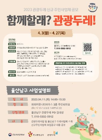 인사이드피플 강애자 기자 | 울산 남구는 11일 와와커뮤니티하우스 에서 ‘2023년도 관광두레 신규 주민사업체’ 모집을 위한 사업설명회를 개최했다.