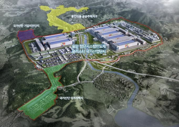 ‘용인 첨단시스템반도체 국가산업단지’는 이동읍·남사읍 일원 777만 3656㎡(약 235만 평) 부지에 삼성전자가 시스템반도체 생산설비(Fab) 6기를 건설하는 초대형 프로젝트다. 삼성전자는 이곳에 360조원을 투자할 계획이라고 밝혔지만 향후 생산설비 건설이 진행되면서 투자규모는 한층 더 커질 것이라는 전망이 나오고 있다. 이곳에는 80여 개 반도체 소재·부품·장비·설계 기업, 연구기관도 입주하게 된다.
