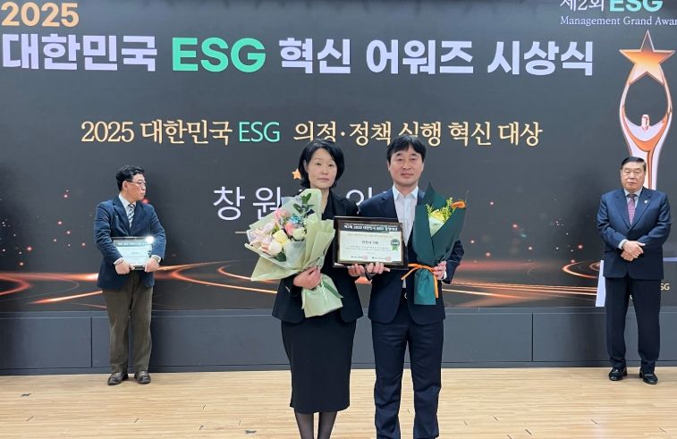 인사이드피플 김재윤 기자 | 창원특례시의회는 K-ESG 기준평가원이 주관하는 제2회 대한민국 ESG 경영대상에서 공공기관·언론 부문 ‘의정-정책 실행 혁신대상’을 받았다고 22일 밝혔다.
