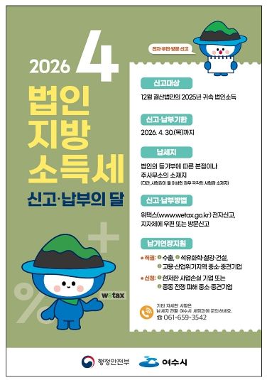 인사이드피플 노재현 기자 | 여수시는 4월 한 달간 ‘2025년 귀속 법인지방소득세에 대한 집중 신고·납부 기간’을 운영한다고 밝혔다.