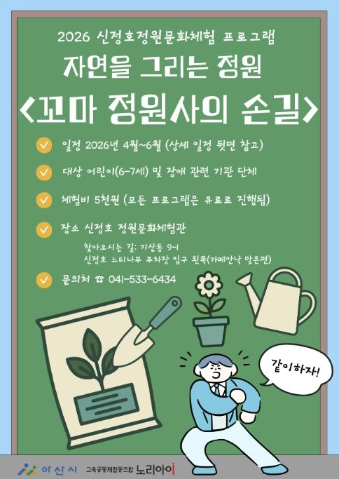 오세현 아산시장은 “신정호정원에서 봄날의 아름다움을 느끼며 즐길 수 있는 특별한 시간이 될 것”이라며, “2026년 아산 방문의 해를 맞아 신정호정원을 중심으로 시민 누구나 참여할 수 있는 정원문화 프로그램을 지속 확대해 나가겠다”고 말했다.