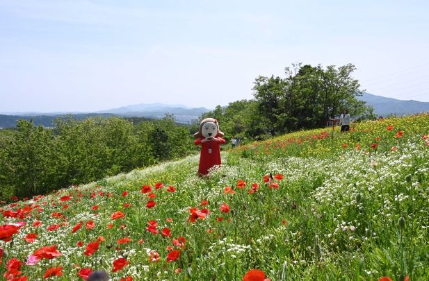 유채꽃을 시작으로 5월 한 달 동안 다운목장 꽃단지에서는 꽃양귀비와 안개초, 수레국화 등을 함께 만나볼 수 있다.
