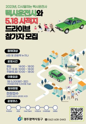 인사이드피플 강애자 기자 | 광주 동구는 제43주년 5·18광주민주화운동을 기념해 광주를 방문한 국내·외 관광객을 대상으로 영화 ‘택시운전사’ 콘셉트를 모티브로 한 역사 체험형 관광 프로그램 ‘2023년, 다시 달리는 택시 운전사’를 운영한다고 밝혔다.