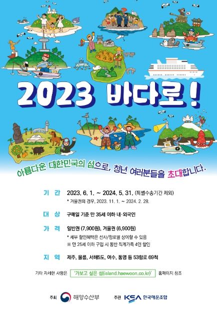 인사이드피플 강애자 기자 | 해양수산부는 6월 1일부터 2023년도 연안여객선 할인이용권인 ‘바다로’ 판매를 시작한다.