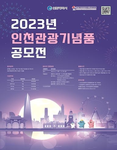 인사이드피플 강애자 기자 | 인천광역시는 인천을 방문한 국·내외 관광객들에게 추억을 선물할 수 있는 인천 고유의 색깔이 담긴 독자적이고 실용적인 관광기념품 발굴하고 판매 활성화를 위해 ‘2023년 인천관광기념품 공모전’을 개최한다고 밝혔다.