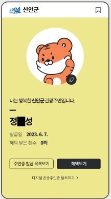 박우량 신안군수는 “디지털 관광주민증 사업추진으로 우리군 방문과 관광소비를 통해 생활인구 증가와 지역경제 활성화가 기대된다.”라며 “참여 업체를 추가로 발굴하고 SNS 홍보 등으로 디지털 관광주민증 사업에 활력을 불어넣겠다.”라고 말했다.