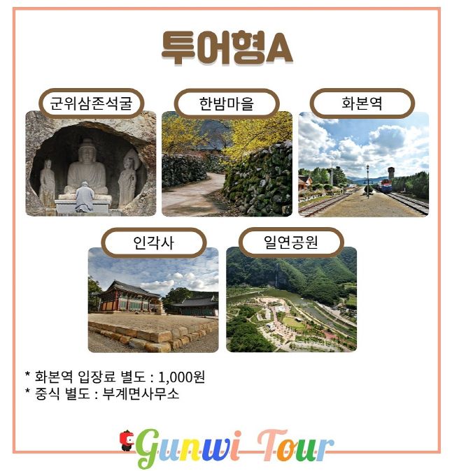 ※ 투어형 코스 1: 청라언덕역→동대구역→군위삼존석굴→한밤마을→부계면(중식)→화본역→인각사&군위댐,일연공원→동대구역→청라언덕역